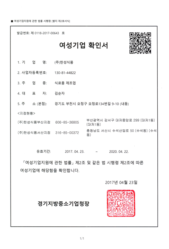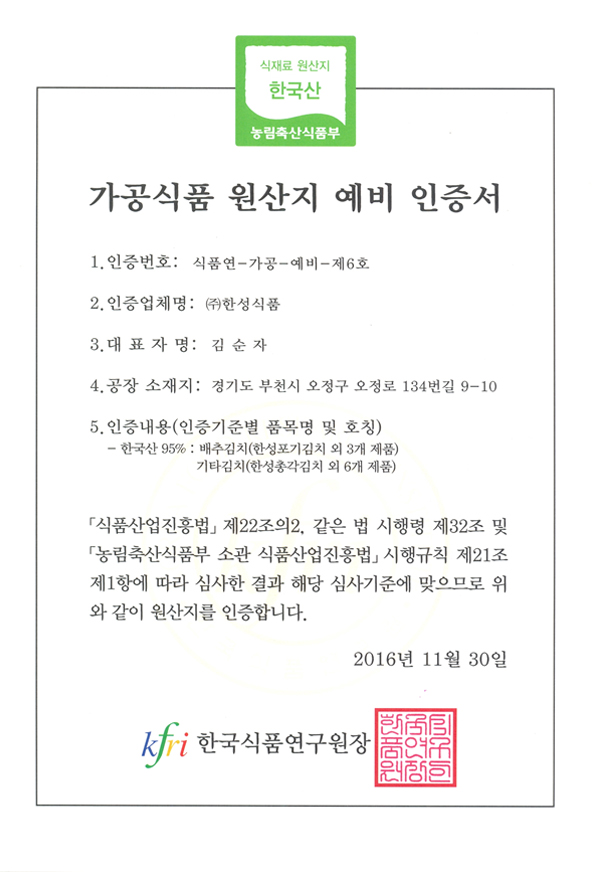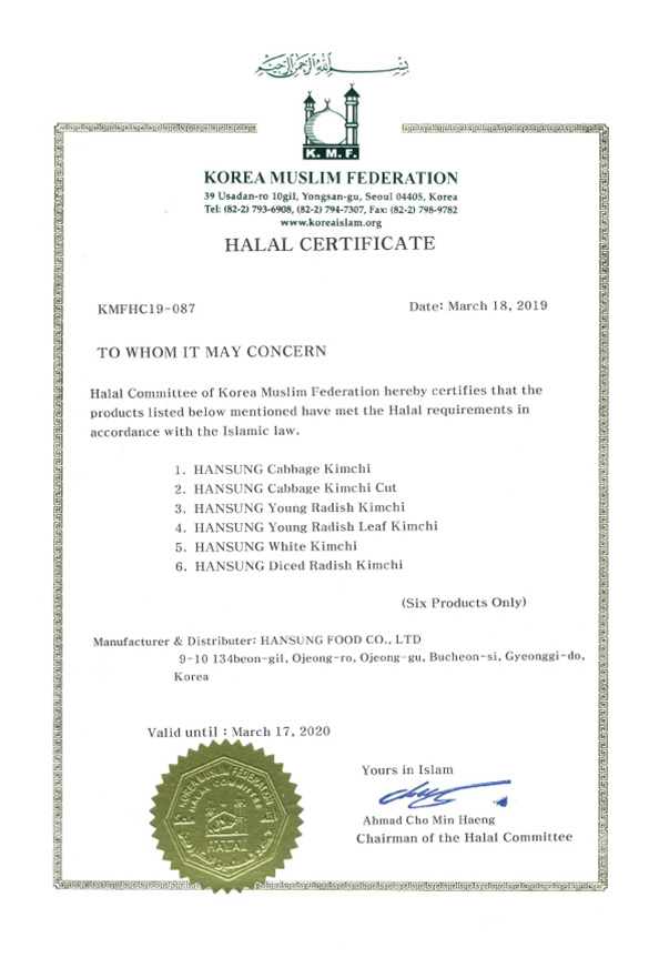 한성식품은 끊임없이 노력하고 연구하고 있습니다. HACCP과 ISO 22000, 할랄 인증 등 각종 품질 인증과 시상내역들을 소개합니다.